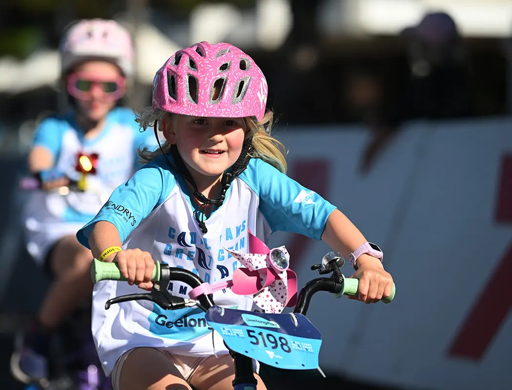 Join in the fun as hundreds of young riders and their families take to the very same finishing straight as the pros – passing the iconic Geelong waterfront and under the finishing gantry.