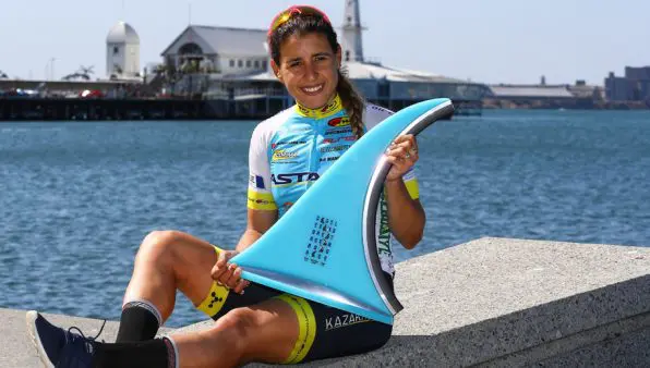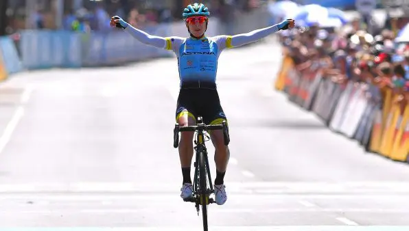 GEELONG, AUSTRALIA - JANUARY 26: Arrival / Arlenis Sierra of Cuba and Astana Women's Team / Celebration / during the 5th Cadel Evans Great Ocean Road Race 2019 - Deakin University, Elite Women a 113km on January 26, 2019 in Geelong, Australia. (Photo by Tim de Waele/Getty Images)