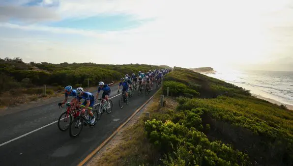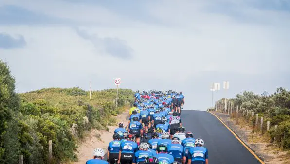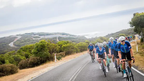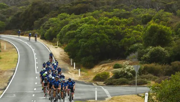 All smiles as the Swisse People's Ride field make their way along the stunning Victorian coast