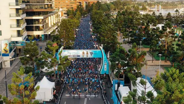 A sea of blue for the start of the 2019 Swisse People's Ride.