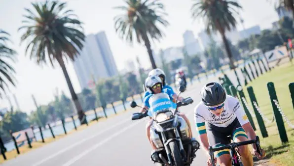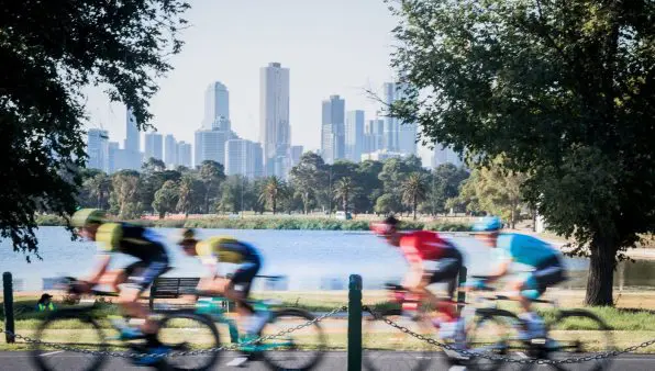 With the backdrop of the City of Geelong, the WorldTour peloton enters our finish circuits