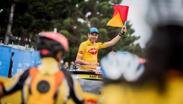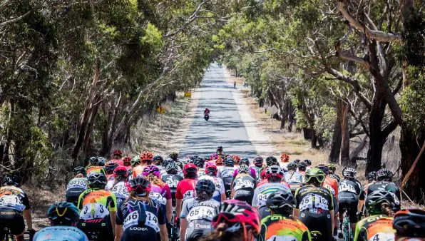 Cadel Evans leads the 2019 Swisse People's Ride peloton for the start
