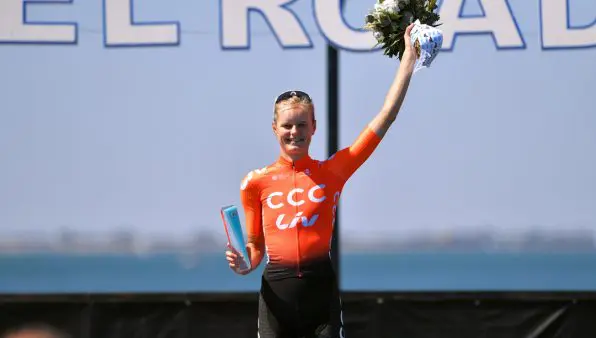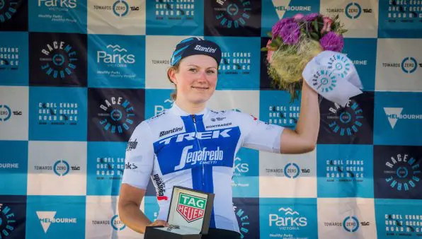 2018 Deakin University Elite Women's Road Race winner - Chloe Hosking, signing on