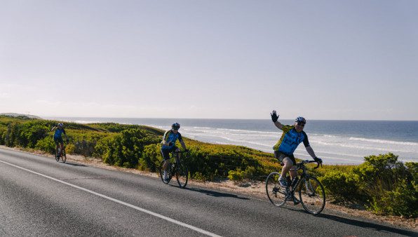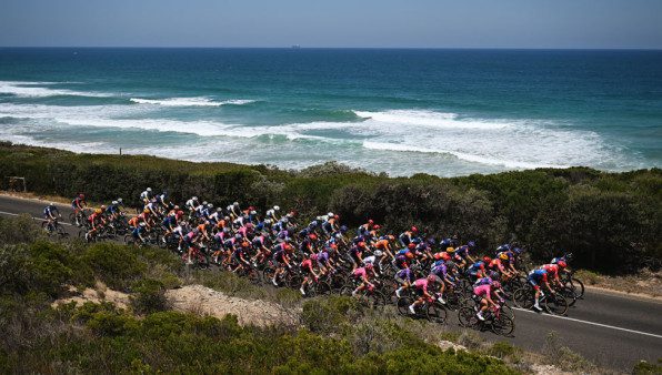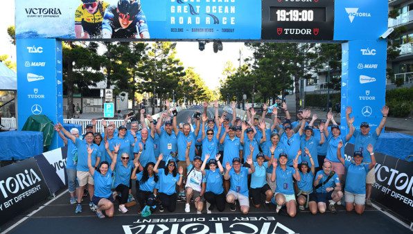 Cycling paradise! Riders take on the breathtaking Great Ocean Road with the iconic Bells Beach’s waves crashing beside them