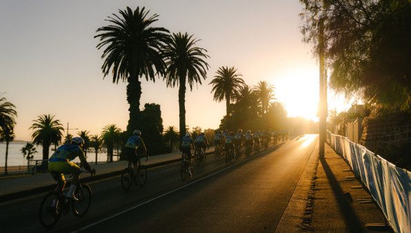 Racing along the waterfront! Stunning views of Geelong’s bay as the riders push the pace