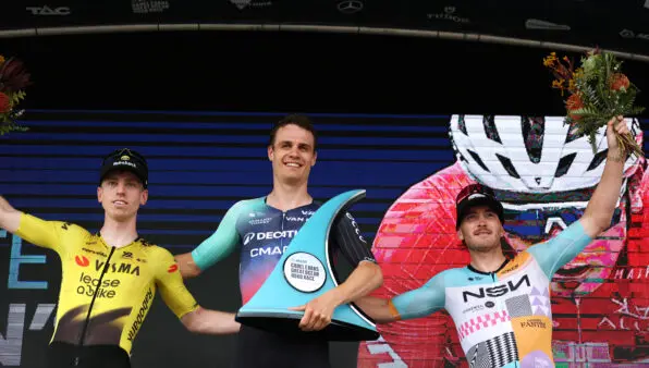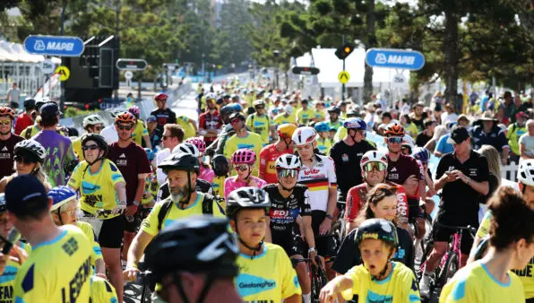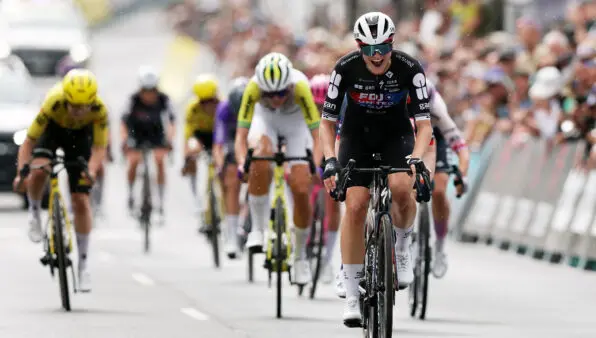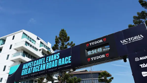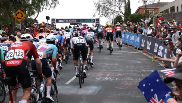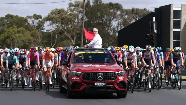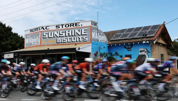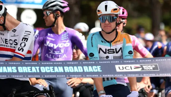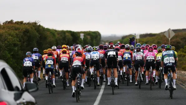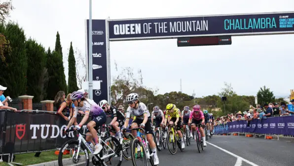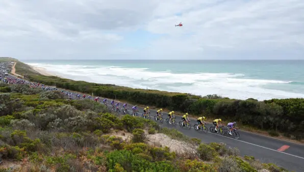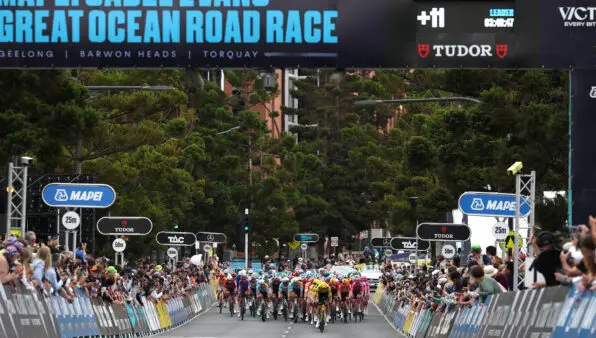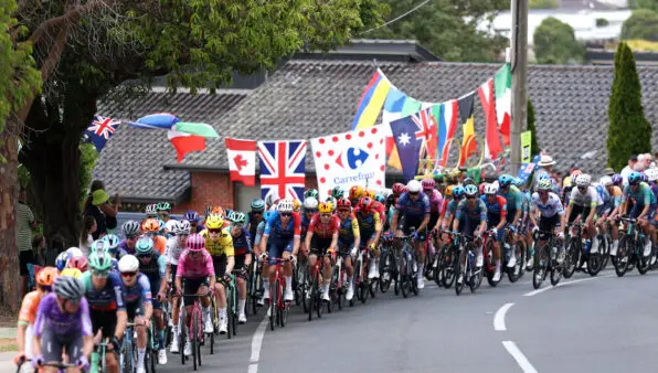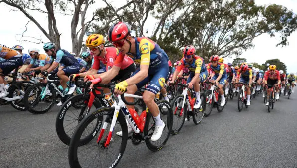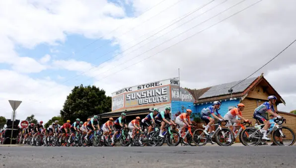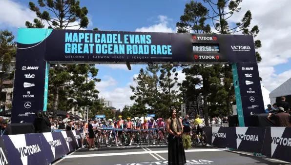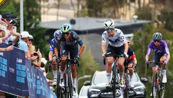 GEELONG, AUSTRALIA - JANUARY 31: (L-R) Ally Wollaston of New Zealand, Marie Le Net of France and Team FDJ United - SUEZ, Lauretta Hanson of Australia and Team Lidl - Trek, Mackenzie Coupland of Australia and Team Liv AlUla Jayco, Amanda Spratt of Australia and Team Lidl - Trek, Nicole Steigenga of Netherlands and AG Insurance - Soudal Team, Loes Adegeest of Netherlands, Emma Cecilie Norsgaard Bjerg of Denmark and Team Lidl - Trek, Alena Ivanchenko of Russia and UAE Team ADQ, Stina Kagevi of Sweden and Team EF Education - Oatly and Anouska Koster of Netherlands and Team Uno-X Mobility compete during the 10th Mapei Cadel Evans Great Ocean Road Race 2026, Women's Elite a 141.2km one day race from Geelong to Geelong / #UCIWWT / on January 31, 2026 in Geelong, Australia. (Photo by Con Chronis/Getty Images)