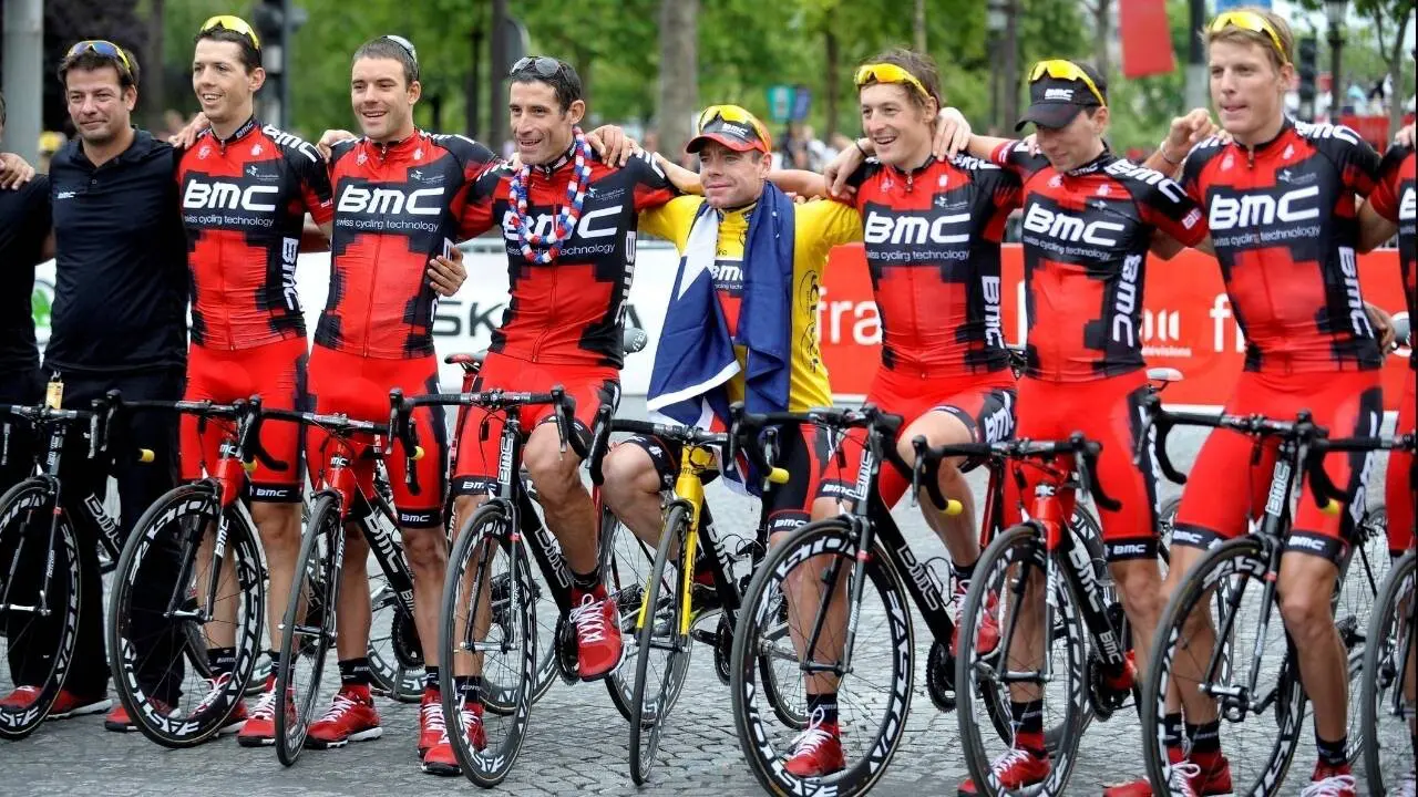 Cadel Evans and BMC celebrate winning the 2011 Tour de France. Photo: Graham Watson.