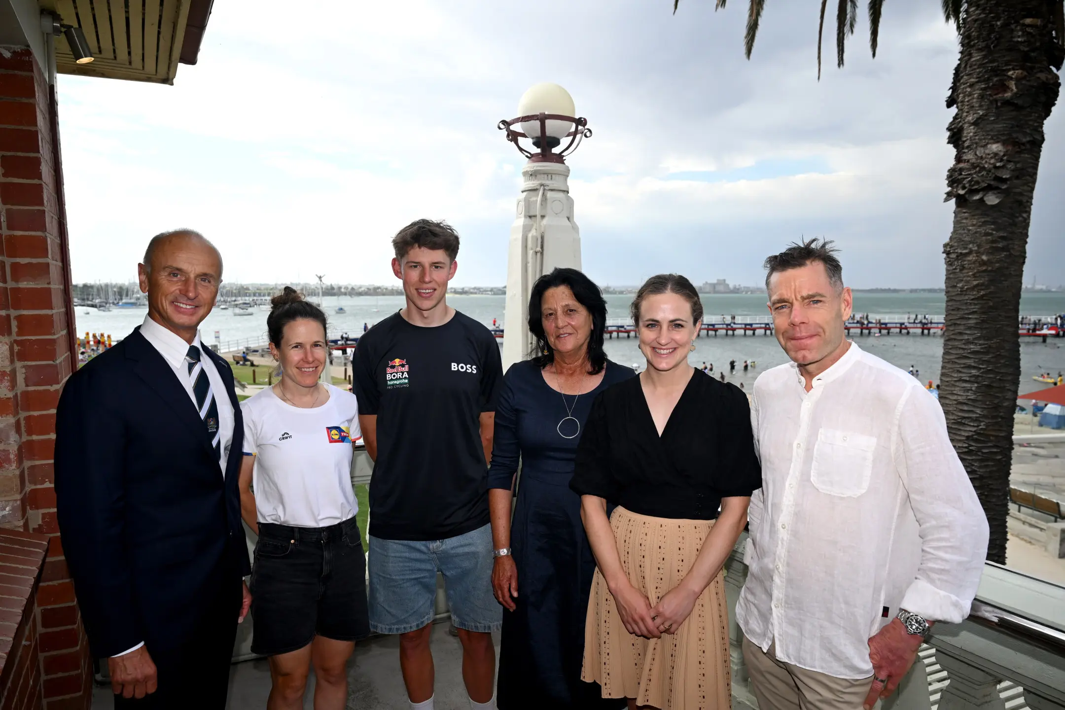 Race Founder Cadel Evans was at the Geelong waterfront on Monday to welcome riders including Georg Zimmermann (Intermarché – Wanty), Lewis Askey (Groupama – FDJ), Josie Talbot (Liv Alula Jayco) and Karlijn Swinkels (UAE Team ADQ), stating he can’t wait for the cycling to get underway across the Geelong, Bellarine and Surf Coast regions.