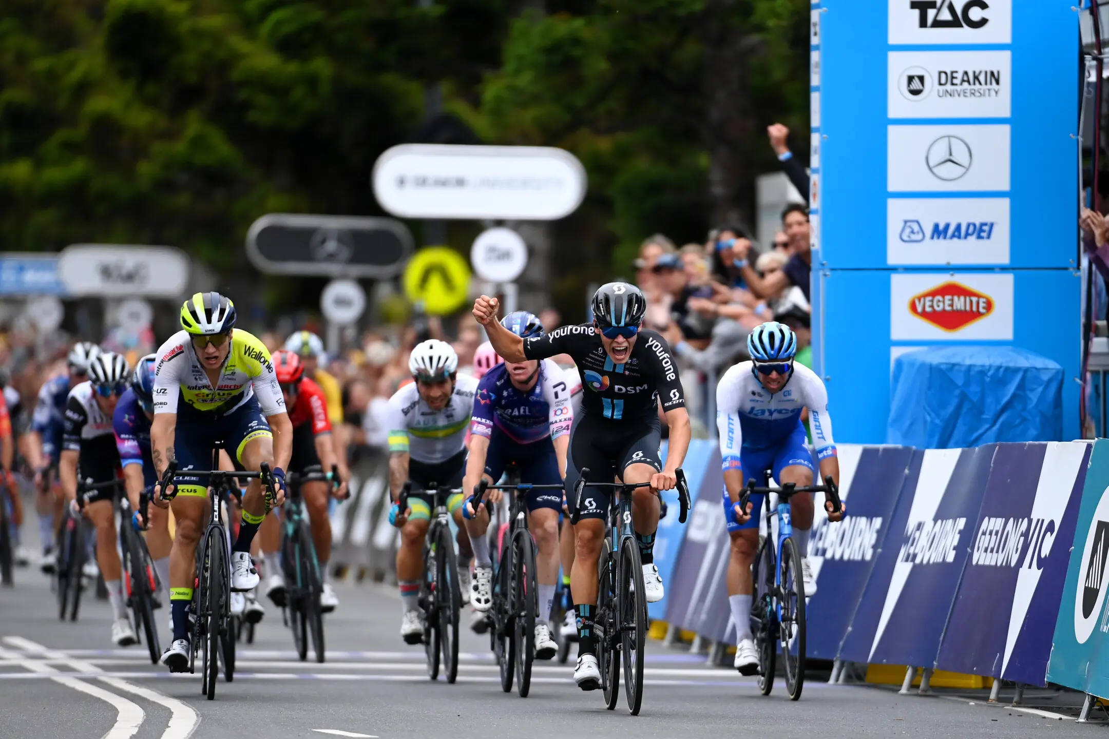 Emotions ran high after Marius Mayrhofer claimed his maiden WorldTour win in Sunday’s Cadel Evans Great Ocean Road Race.