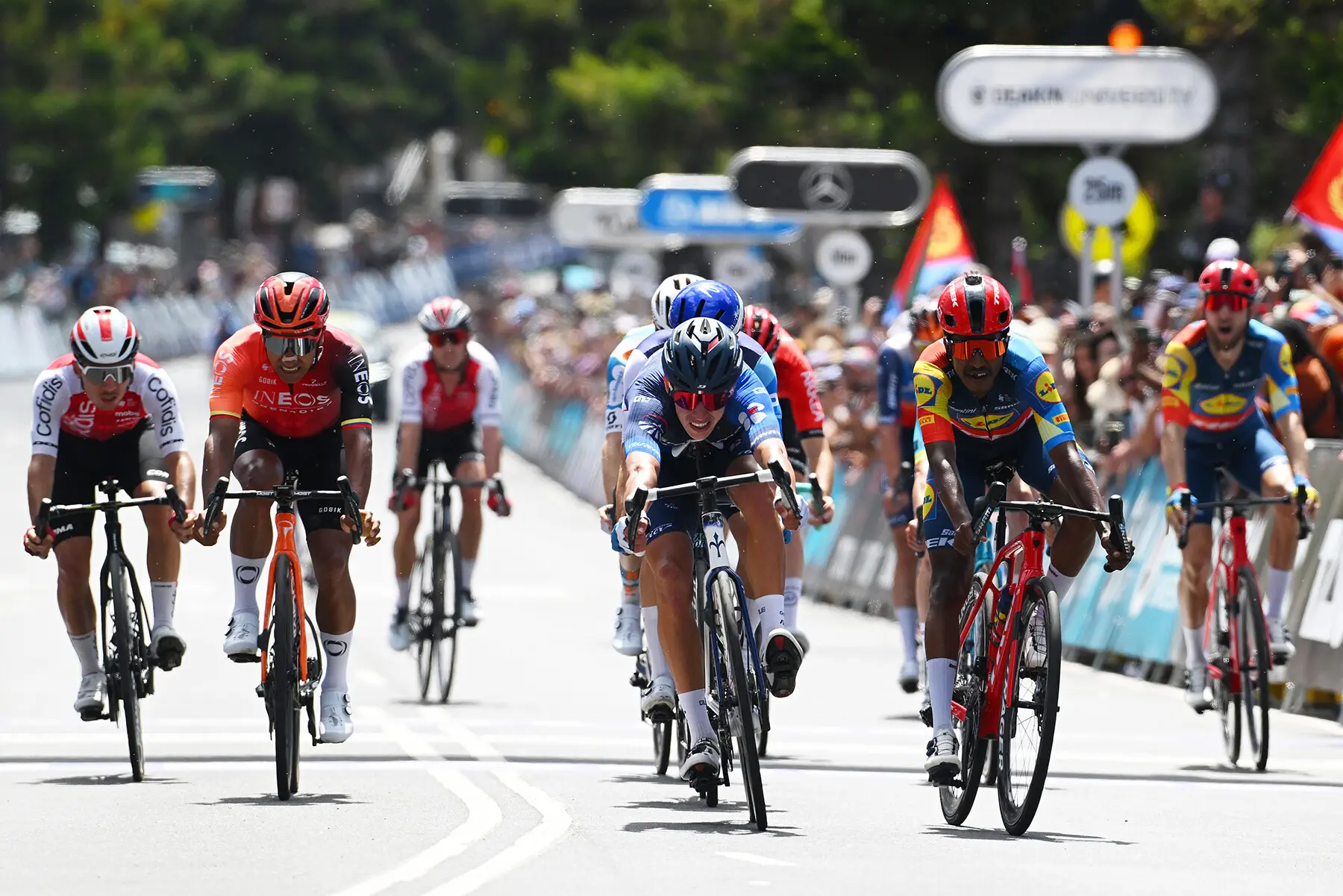 - This played well for the peloton as they were able to keep control of the race with the gap. Riders from top outfits such as Team Jayco AlUla, INEOS Grenadiers, Lidl-Trek, Team DSM-Firmenich Post NL and Groupama – FDJ began to bring their riders up to the front in the remaining two laps of the Geelong finishing circuit setting the tempo of the race