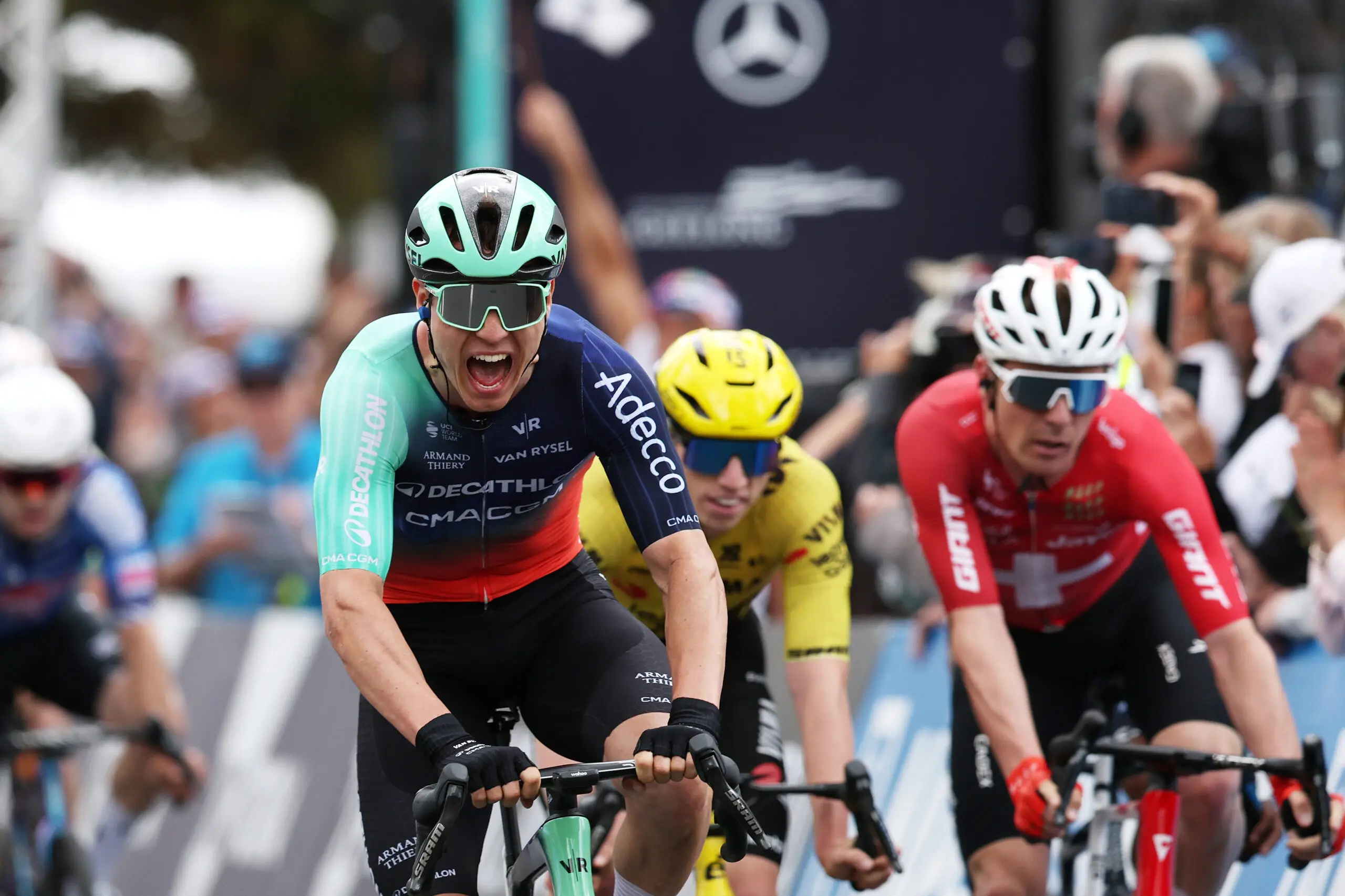 Denmark’s Tobias Andresen won the 2026 Mapei Cadel Evans Great Ocean Road Race today in a brilliant bunch sprint on a crowd lined Geelong waterfront.
